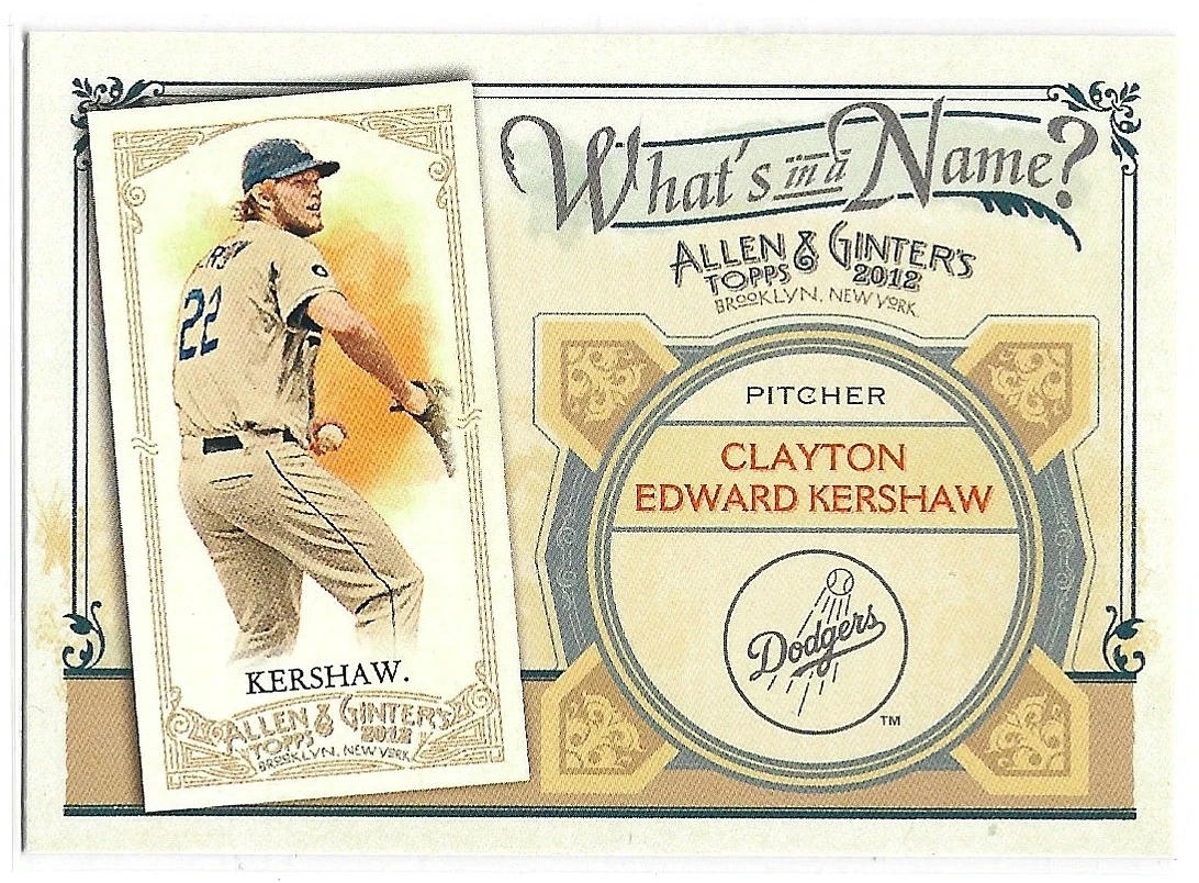 2012 Topps Allen & Ginter What's In A Name #WIN34 Clayton Edward Kershaw