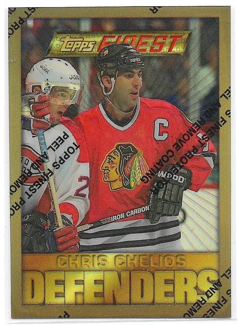 1995-96 Finest Refractors #19 Chris Chelios (Gold, Defenders)