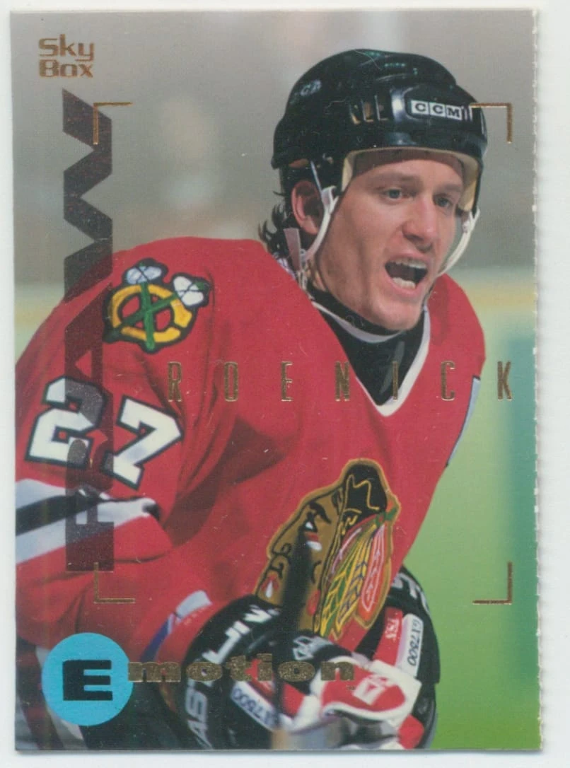 1995-96 SKYBOX EMOTION SAMPLE SHEET - JEREMY ROENICK #L (PERFORATED LEFT)