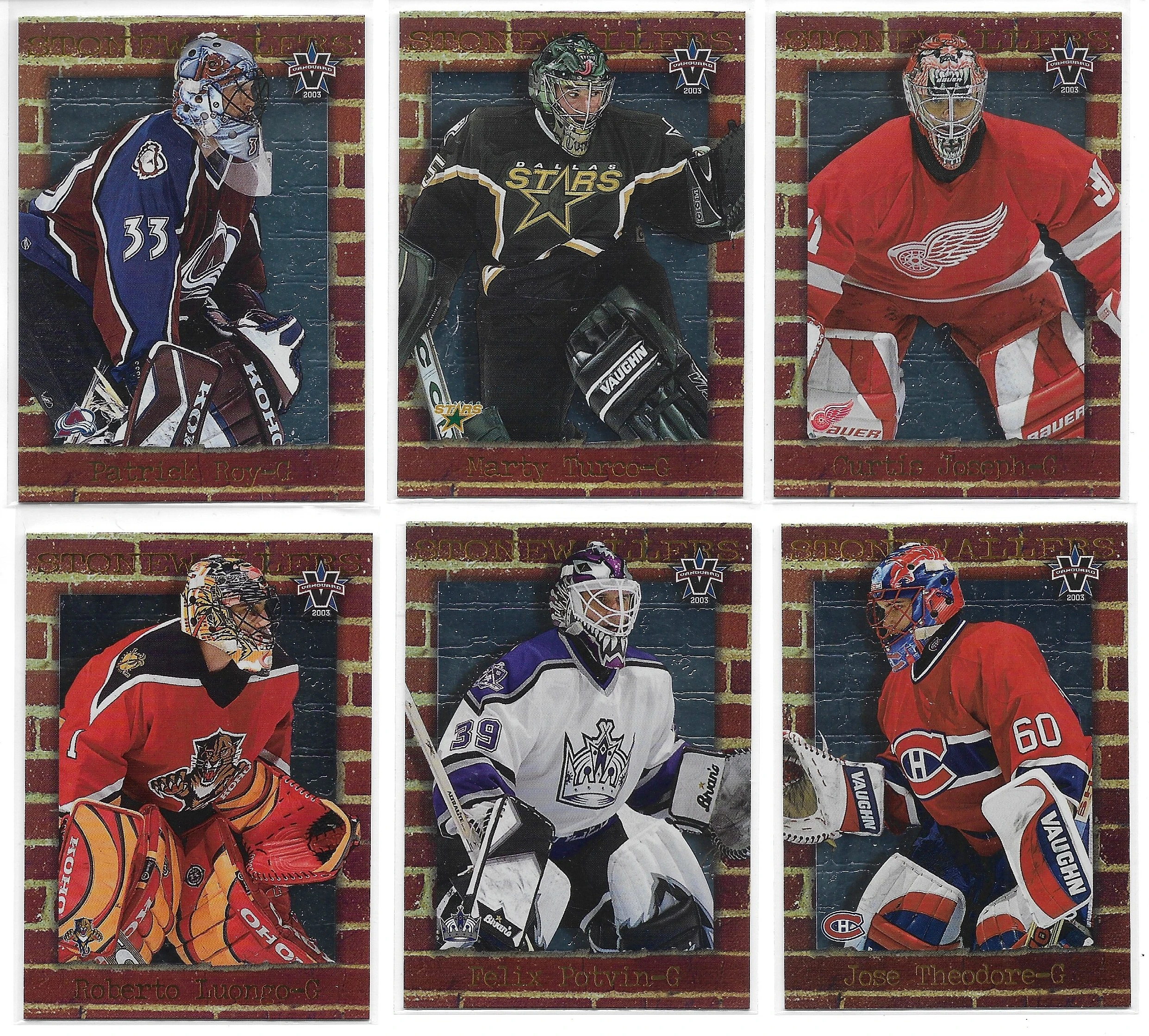 Set includes Patrick Roy, Marty Turco, Curtis Joseph, Roberto Luongo, Felix Potvin, Jose Theodore, Martin Brodeur, Mike Richter, Patrick Lalime, Roman Cechmanek, Nikolai Khabibulin & Ed Belfour.