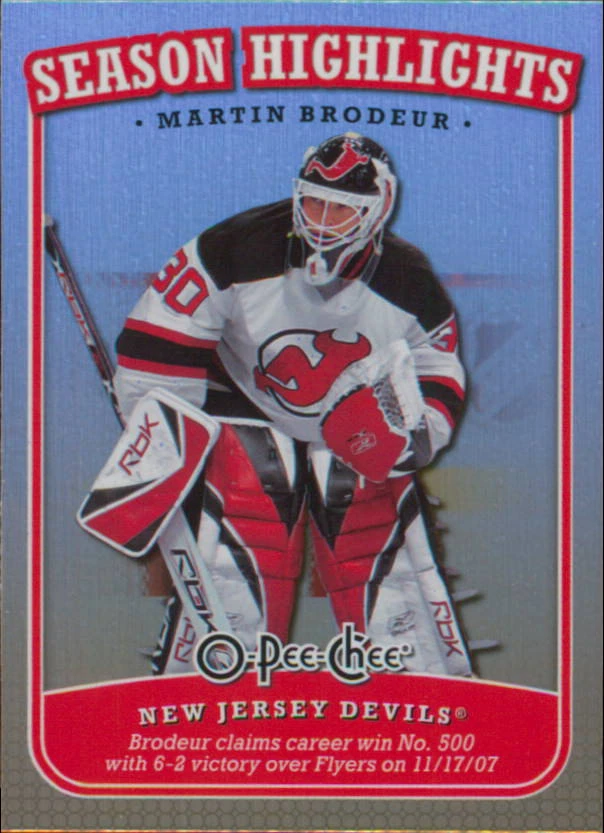 2008-09 O-PEE-CHEE - MARTIN BRODEUR #SH-11 SEASON HIGHLIGHTS