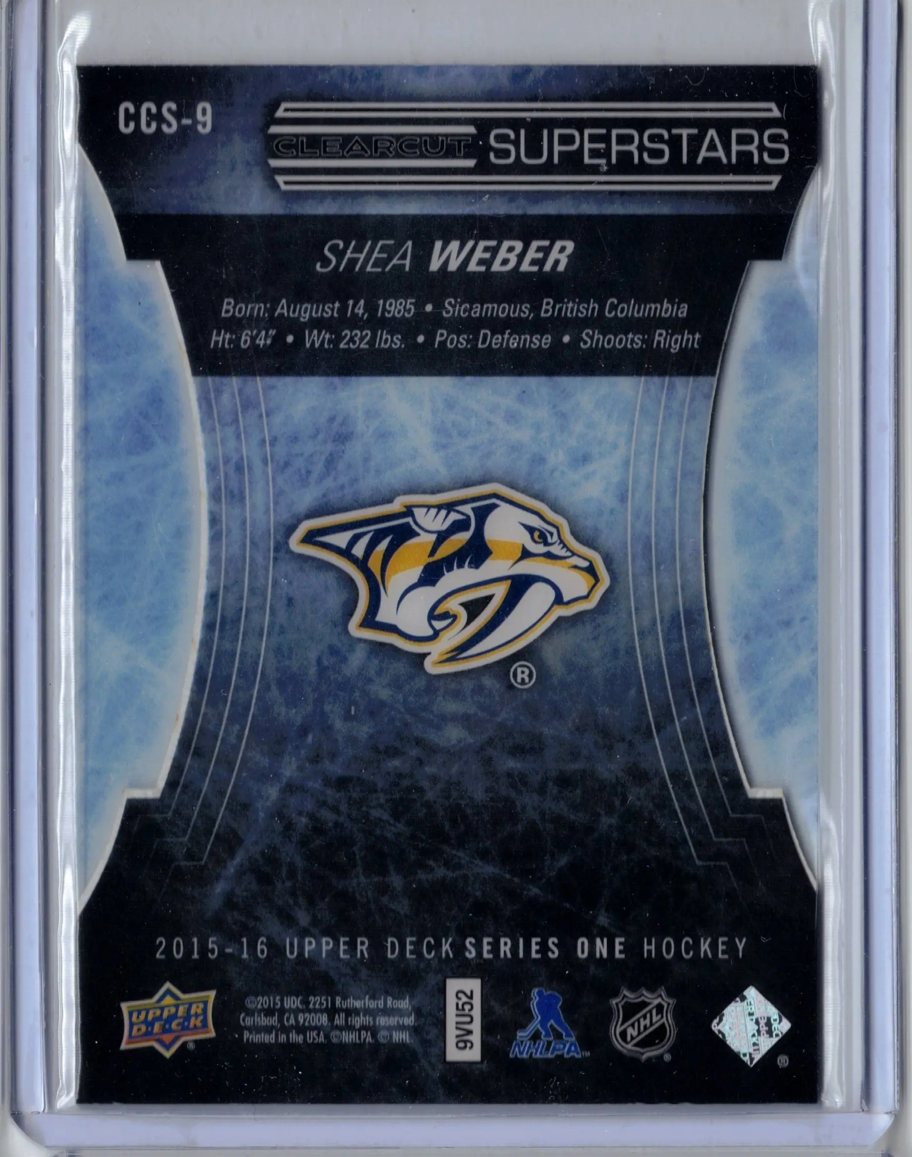 2015-16 UD Clearcut Superstars Shea Weber CCS-9