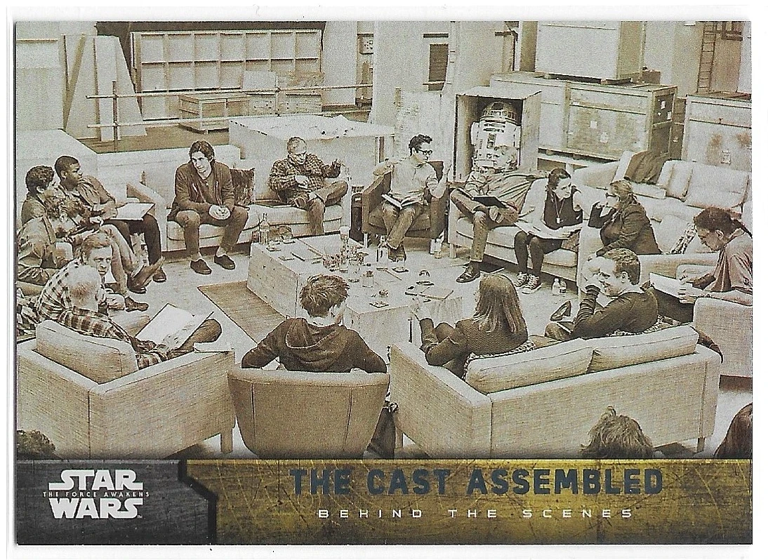 2015 Topps Star Wars: The Force Awakens Behind the Scenes Foil #1 The Cast Assembled (044/250)